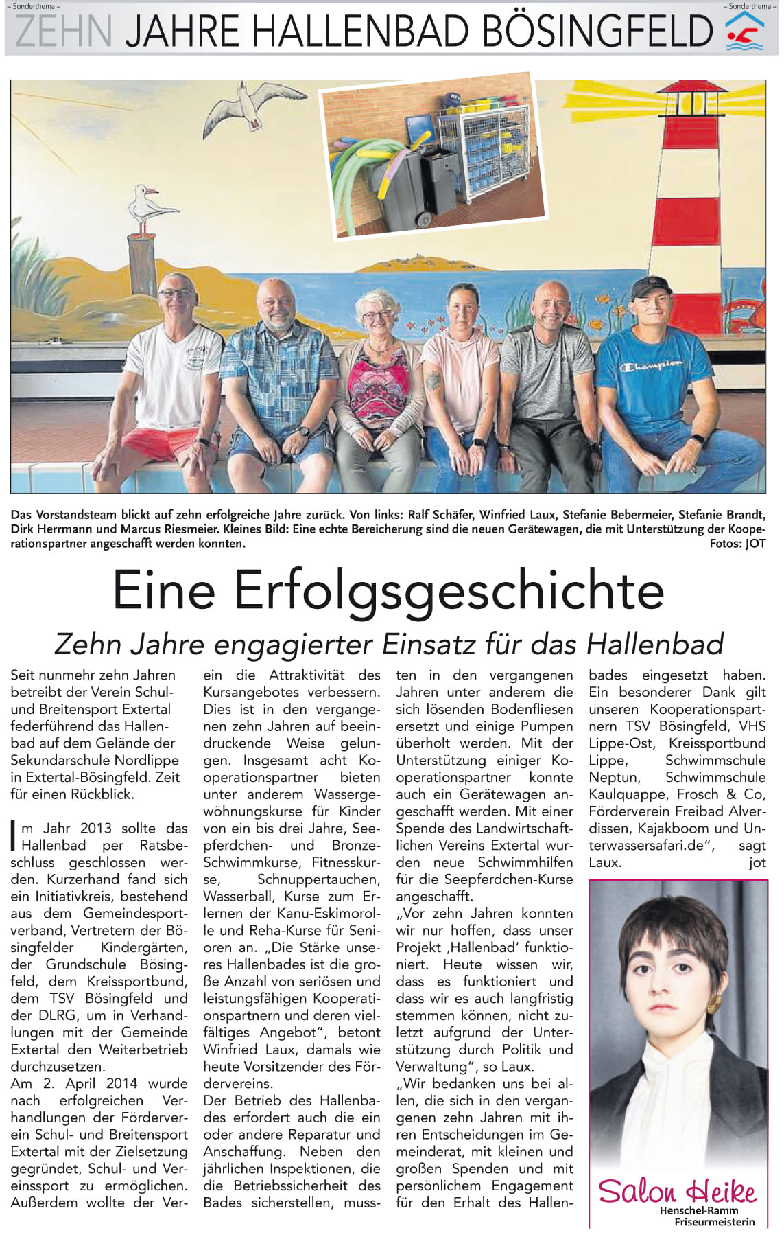 1. Der Rat der Gemeinde Extertal wird darüber befinden, ob eine Reparatur durchgeführt wird. Hier bin ich sehr zuversichtlich, da die letzten Entscheidungen hinsichtlich unseres Hallenbades immer mit großer Mehrheit gefasst wurden. Außerdem wird sich der "Hallenbadverein" mit einer stattlichen Summe an den Kosten beteiligen.